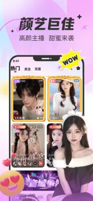 同城直播:高颜值男女主播,或热辣或呆萌或搞怪,多种类型甜蜜互动!多人语音:可爱音、御姐音、烟嗓控?多人连麦语音厅嗨起来!趣味PK:单人、多人趣味PK,一起抢占对方高地!
