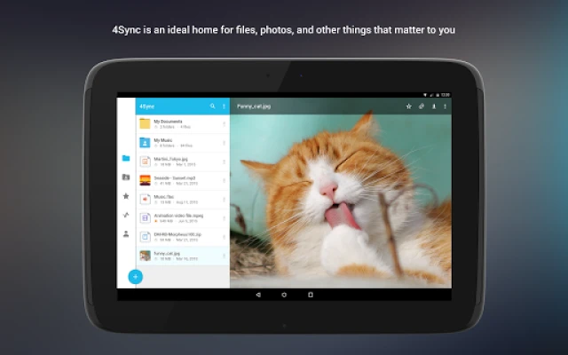 4Sync for Android is a simple and user-friendly application, which enables you to sync, access, upload, download and manage all data, stored at your 4Sync account, e.g. pics and photos, documents, music or video files, etc. on your Android smartphone and tablet wherever you are at the moment.