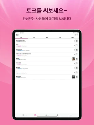 토크 올리고 쪽지로 채팅 나누다 보면 어느 새 친한 남친 여친 친구가 됩니다.
