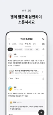 ■ 크리에이터와 팬이 채널 커뮤니티에서 게시글, 질문, 투표를 남기고 소통할 수 있어요.