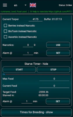🦖 Taming Details: In-depth knockout and starve taming calculations with precise timers.