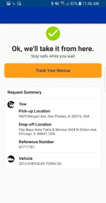 • Retrieve confirmation service is on the way and the estimated time of arrival