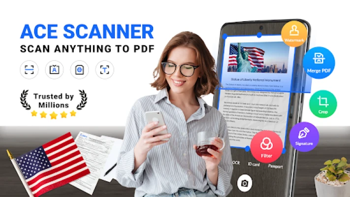 ACE Scanner - scanner app adopts OCR (Optical Character Recognition) technology to help you accurately recognize text on images or papers, and export text for later copying, editing, searching, and sharing.