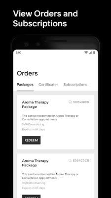 - Manage, redeem, and track your packages, gift certificates, and subscriptions with a few taps.