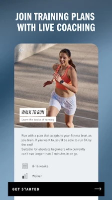 - Run plans & personalized training for races (weight loss, 5K, 10K, half-marathon, marathon)