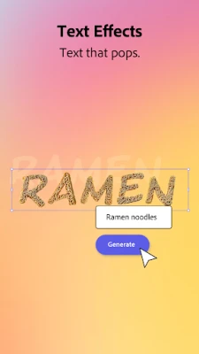 Create stunning images, text effects, and more from just a description with generative AI.