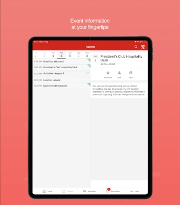 Use the app to review personalized agenda, view activity descriptions, review travel and/or hotel information, attendee lists and more.