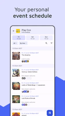 • Filter planned games by empty seats, complexity, duration, or search for a specific game