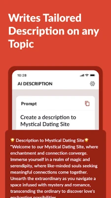 Struggling to find the perfect words for your content? Look no further! Our app is the ultimate solution for crafting compelling descriptions across various platforms. Whether you're working on a YouTube video, Instagram post, product listing, job description, or anything in between, AI Description Generator has got you covered!