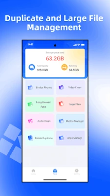 Identify and delete duplicate files (such as photos, videos) and large files that take up space