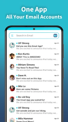 Unlimited Accounts: Add any number of email accounts across Gmail, Outlook, Yahoo, Hotmail, and AOL. See them in a unified view all together or one by one with a simple tap.