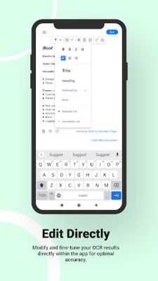 AI OCR turns your smartphone into a powerful scanner, allowing you to digitally capture and edit printed or handwritten text. Perfect for documents, receipts, business cards, and notes.