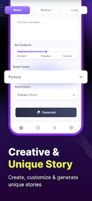 The AI story generator app is designed to write attractive and original stories automatically. It uses AI algorithms and vast datasets which makes our AI story maker app to write creative stories.