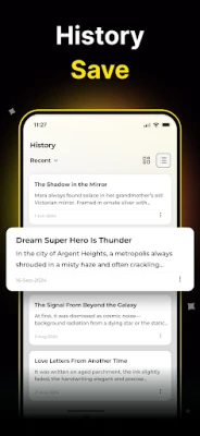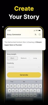 Generate a story that fits your mood! It offers a variety of story genres including: Fantasy, Thriller, Mystery, Fairy Tale, Science Fiction, Horror, Historical, Adventure, Drama, and more. For every genre, the app generates distinct plots and characters.