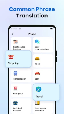 Includes a rich collection of frequently used phrases for greetings, shopping, transportation, dining, emergencies, and more. Just select and use—no need to type manually.