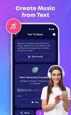 - The AI text to speech app will use AI to generate a music track based on your description.