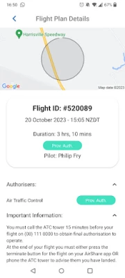 The AirShare mobile app puts the New Zealand airspace at your fingertips. Log your flights on the go, request access to controlled airspace, and get landowner approvals all in one place.