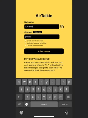 Unlike traditional walkie-talkie apps that rely on servers, AirTalkie provides true P2P communication via Wi-Fi or Bluetooth, making it the best solution for offline chat, voice messaging, and team communication. Whether you’re a rider, traveler, adventurer, or part of a tactical team, AirTalkie ensures reliable direct messaging anywhere!