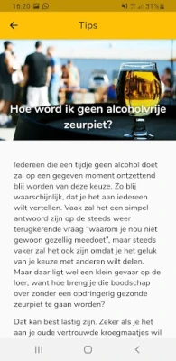 De handige trackers en de wekelijks geactualiseerde blog met ervaringsverhalen geven je net dat duwtje in de rug naar een heerlijk alcoholvrij leven. Ga ervoor, en geniet ervan!