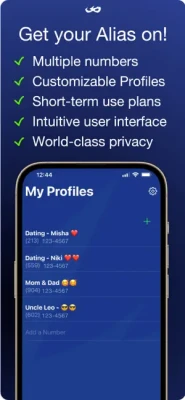 Immediate activation and a nationwide selection of phone numbers gives you the social agility to do more of everything you love, while keeping your core mobile number private. Get a custom number for Dating, Socializing with buddies or whatever.