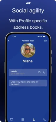 Organize Contacts by purpose. AliasMobile gives you a Contacts directory for each phone number, so you can keep your contacts organized by purpose and place calls and send messages right from the Contact record.