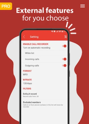 By using Call recorder, You can automatic call recording and save any phone call you want.