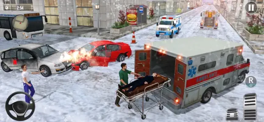 Your duty is to pick up the injured people from emergency and accidental spots and take them to the nearest hospital for medical treatment. You need to park the ambulance at parking area to for quick rescue.