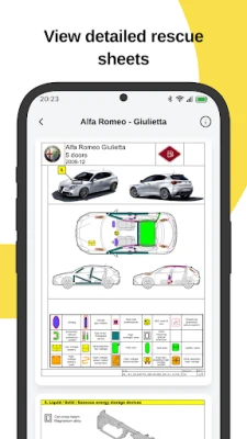 The ANCAP RESCUE app provides emergency services and first responders with quick access to important vehicle safety information for a range of new and used vehicle makes and models available in Australia and New Zealand. To assist emergency services and first responders with the safe rescue and extrication of vehicle occupants involved in a road crash, standardised colour-coded Rescue Sheets which meet ISO Standard No. ISO 17840-1 are provided within the app and identify potential in-vehicle hazards including: • Fuel tanks • High voltage batteries • Airbag inflators • Seatbelt pre-tensioner inflators • Gas struts • High-strength steel
