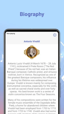 In this free app for Android you can choose to learn more about the composer in Antonio Vivaldi biography, or listen to some of the composer’s most famous classical music free.