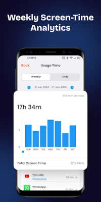 - Usage Statistics & Insights: Track screen time, get app usage reports, and manage screen time apps data effectively. Use insights to reduce screen time, enforce an app time limit, and apply screen time control for better focus. Perfect for anyone managing screen time for work or parenting.