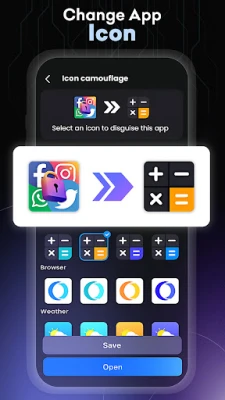 Disguise Applock as another app by converting the icon and replacing the original app icon with app themes. Confuse peepers to prevent this app from being discovered by others.