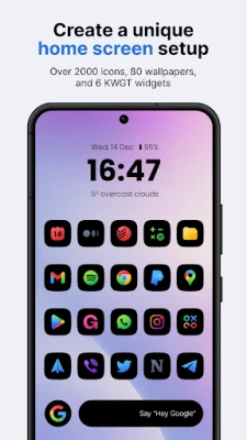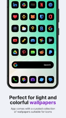 Introducing our squircle android icon pack - Ares Black. A unique and stylish collection of colorful glyph icons on a black squircle, perfect for any modern Android phone. With a focus on simplicity and elegance, these icons feature clean lines and a minimalist design that will elevate the look and feel of your homescreen and app drawer. The pack includes over 5,365 icons, 90 wallpapers, and 7 KWGT widgets to complete the look of your homescreen. For the price of one app, you get content from three different apps! Take your homescreen design to the next level with our Ares Black icon pack today!