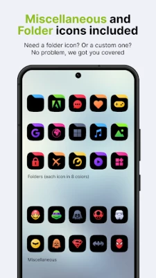 All our icon packs contain alternate icons for many popular apps, dynamic calendar icons, masking of unthemed icons, folders, and miscellaneous icons (you need to apply them manually).