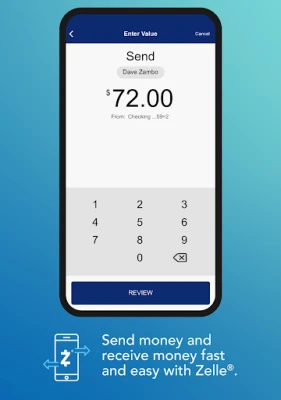 • Send and receive money with Zelle® using a U.S. mobile number or email address