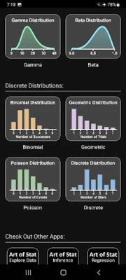 The Art of Stat: Distributions app explores and visualizes continuous and discrete probability distributions via sliders and buttons.