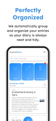 - Automatic Tagging: AudioDiary automatically tags your entries so you can group them by category. Add your own tags to create custom categories.