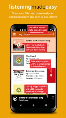 ● Download multiple audiobooks simultaneously to your device via wifi or cellular data.