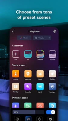 - Customizable Scenes: Create and save your own lighting scenes for different moods and occasions, from cozy movie nights to all-night gaming sessions.