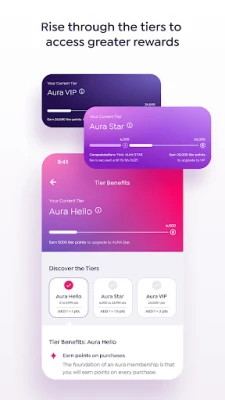 With an Aura membership, you earn points on every purchase. Move up the tiers from Aura Hello to Aura Star and Aura VIP as you earn points and access more benefits and personalised offers.