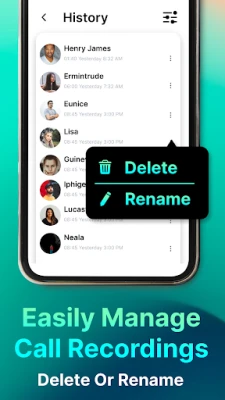 - Manage and sort your phone recording with two functions “Delete” and “Rename”
