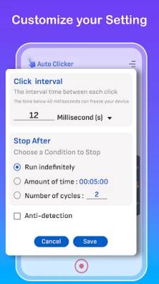Any app, any interval, any location, once you specify, Auto Tapper can do repeated clicks or swipes WITHOUT ROOT access! Repeated Automatic Click or Swipe anywhere on the screen you want with custom durations.