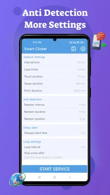 ✓ Customize click parameters: delay, duration, and repeat count