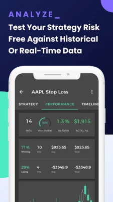 Trade smarter with advanced research and analysis tools.Simulate your strategy risk-free using real-time or data Backtest it against historical data. Easily analyze your strategy performance and edit it to optimize the results.