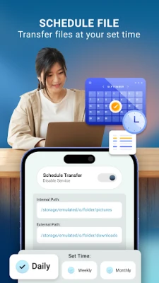 2. Schedule Transfer: Enable switch and schedule your day and time with source and destination folder it will directly transfer data when schedule time got.