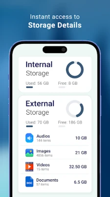 Used and free space data available to understand of space in both internal storage and SD card storage.