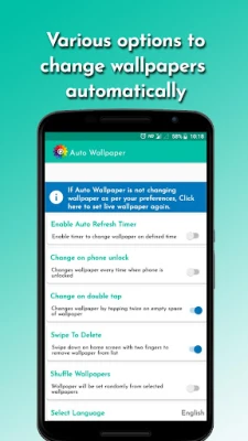 Auto wallpaper will change the wallpaper of your phone screen automatically from the selected wallpapers.