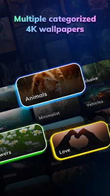 • Category-wise Display: Browse a huge collection of beautiful 4K wallpapers sorted into categories for easy selection.