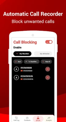 Call Recorder is very easy to use. You can white list which calls to record and which calls to ignore. You can enable or disable Call Recorder to automatically record all calls, outgoing calls, or incoming calls.