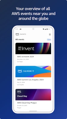 The AWS Events app is your companion in planning and navigating AWS Summits and featured events like re:Invent and re:Inforce. Download the app to: