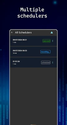 Customizable Controls: Start, stop, and schedule recordings with ease.